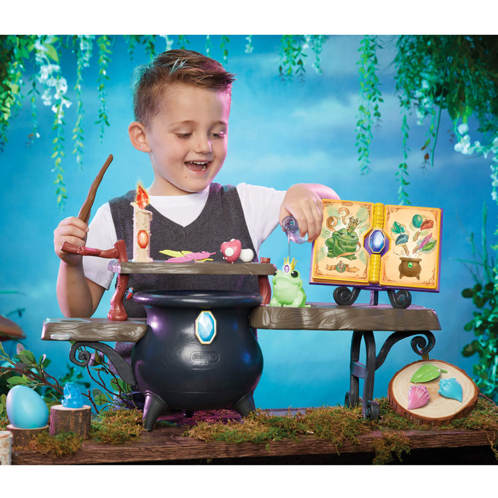 • WATCH THE MAGIC. Scoop a sample of your potion from the cauldron and pour it over the frog to see the magic.